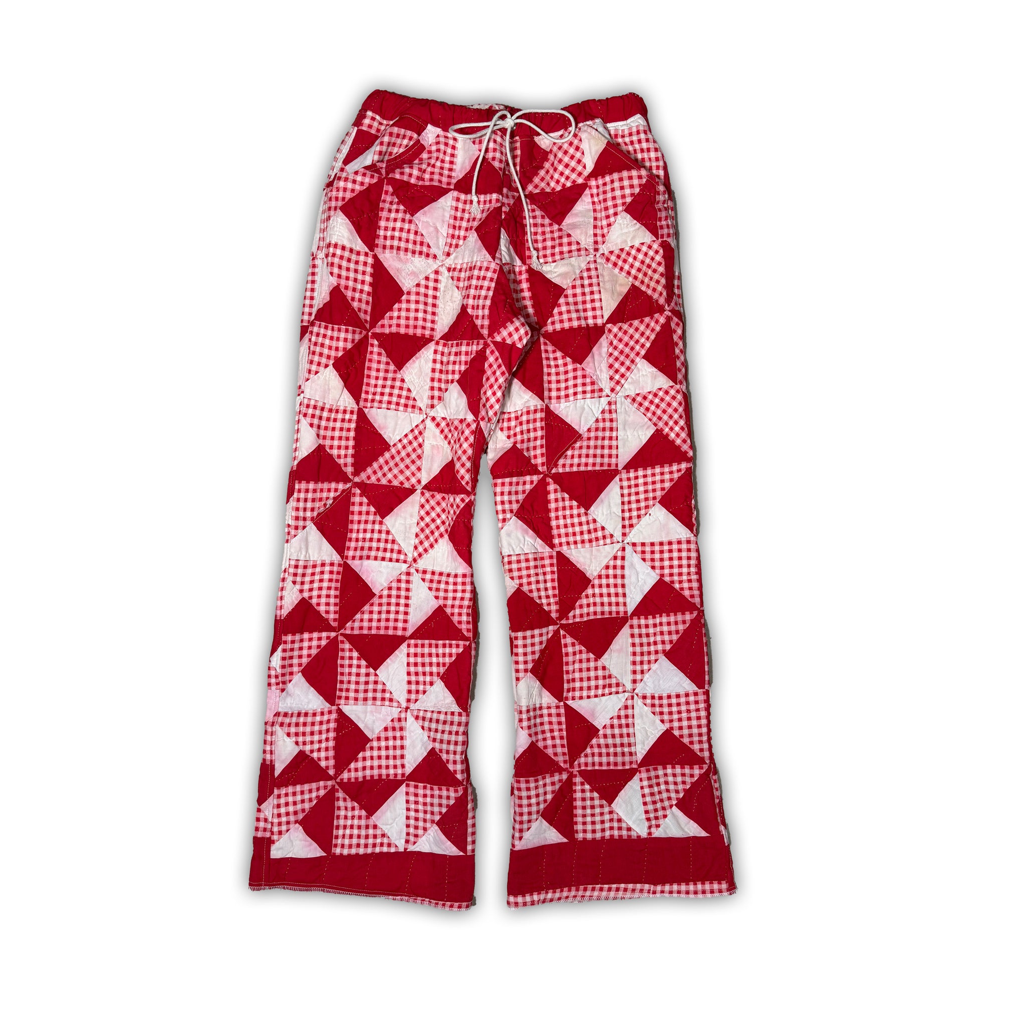 Pants made from a quilt.