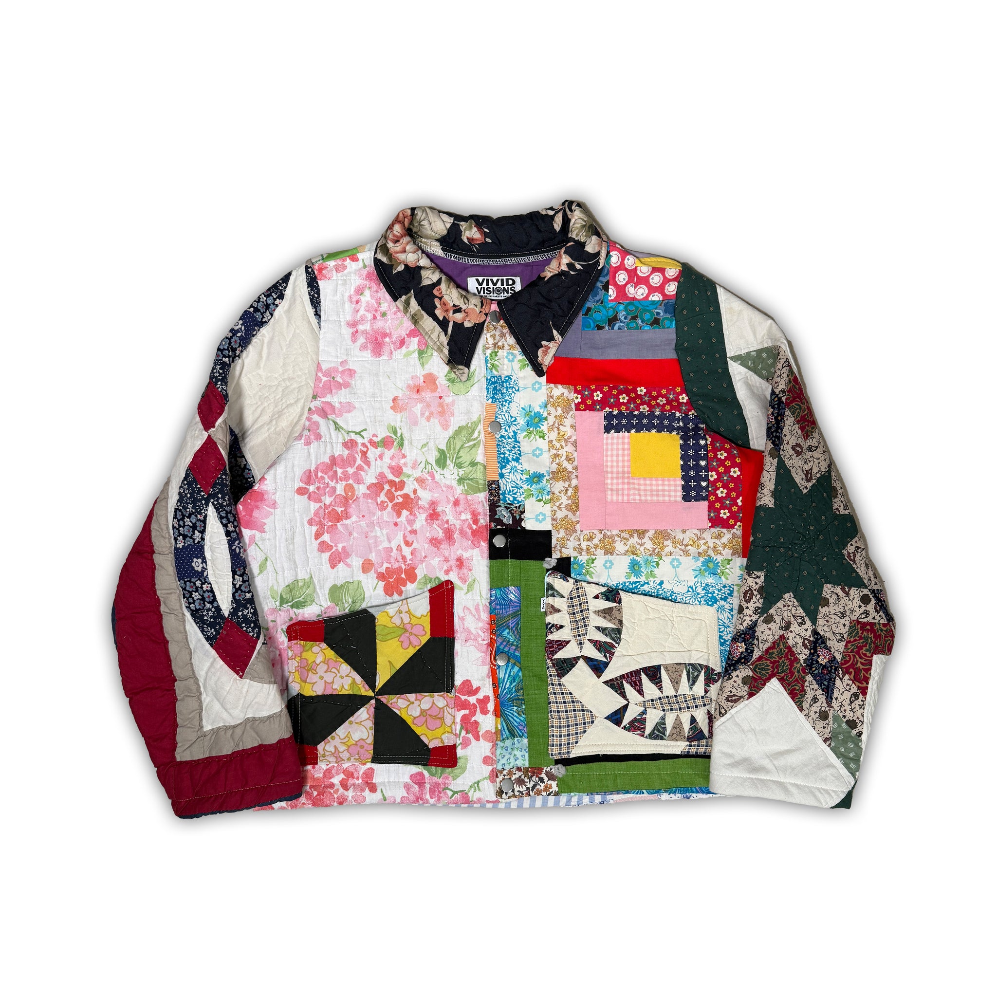 Each jacket is made using leftover pieces from vintage quilts that couldn’t exist as a single garment on their own. Instead of forcing uniformity, these pieces are pieced together through patchwork, letting contrast, texture, and history do the talking.